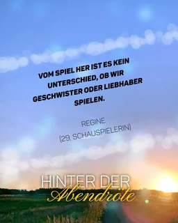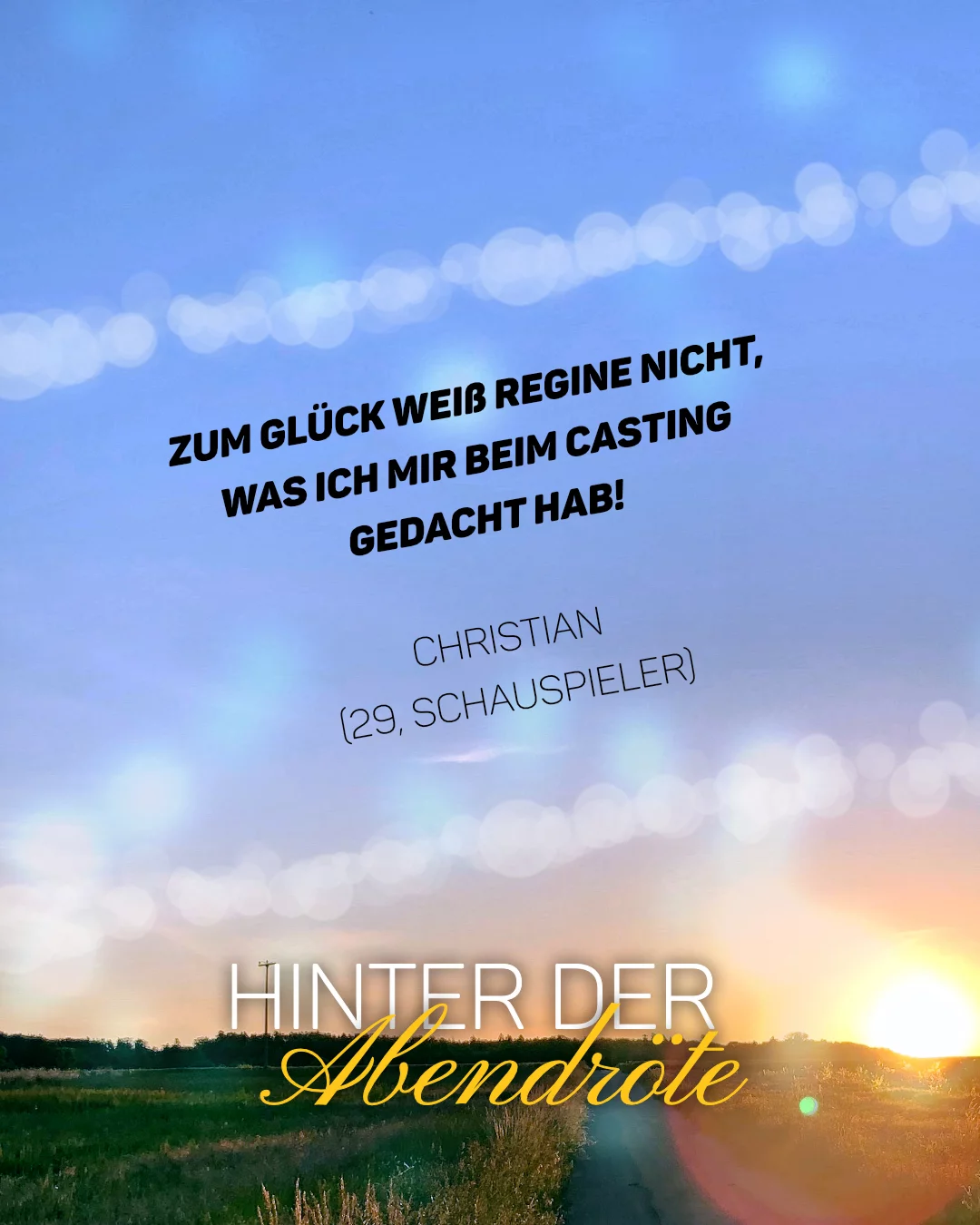 Regine: Ich hab mich gefreut, als ich Christian beim Konstellationstest getroffen hab. Da konnte ich natürlich auf unsere gemeinsame Zeit zurückgreifen. Aber vom Spiel her ist es kein Unterschied, ob wir nun Geschwister oder Liebhaber spielen. Das Vertrauen muss einfach da sein, um sich auf den Partner einzulassen.